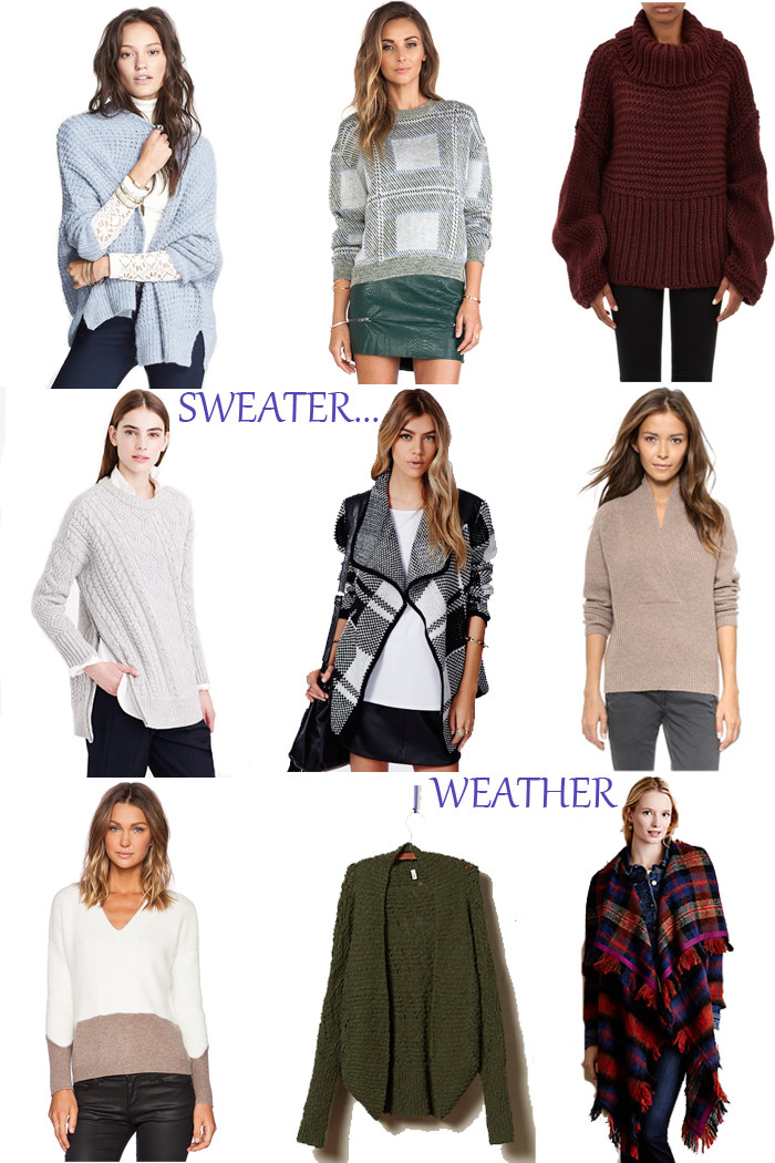 It’s finally here! Sweater Weather! And I am delighted! Bring on the neutrals, the fuzzy, the oversized and the prints! I love sweaters because they are definitely pieces you can wear season after season and layer upon layer! Shop my top picks in knits above by clicking the sweaters in the image or the corresponding links below:
