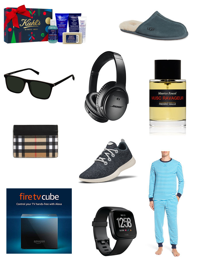 I had to put together a last minute gift guide for guys because I know he is the hardest to buy for! My husband always says he doesn’t need anything or know what he wants, but I hate not surprising him with something. He is one of the few men that loves having nice skincare and has been using Kiehl’s forever and loves it so that is always one of my go-to beauty gifts for him besides his favorite luxe cologne from Frederic Malle linked. I also know he lives in cozy clothes since he works from home and rarely goes out so the slippers and pjs are the perfect gift. This year I think everyone needs the Fire TV Cube – it is my favorite gift we have gotten and all guys will love it. It’s a voice controlled streaming device that pairs with your tv so no more searching for the remote, just ask Alexa to turn on the TV, turn on your favorite show and turn up the volume! It’s awesome. I also threw in a few things I thought my dad or hubs would love including these Allbird sneaks, Burberry leather card case, Bose headphones and the Fitbit smart watch. Thanks so much for stopping by today! Shop by clicking on the images or find the links below!