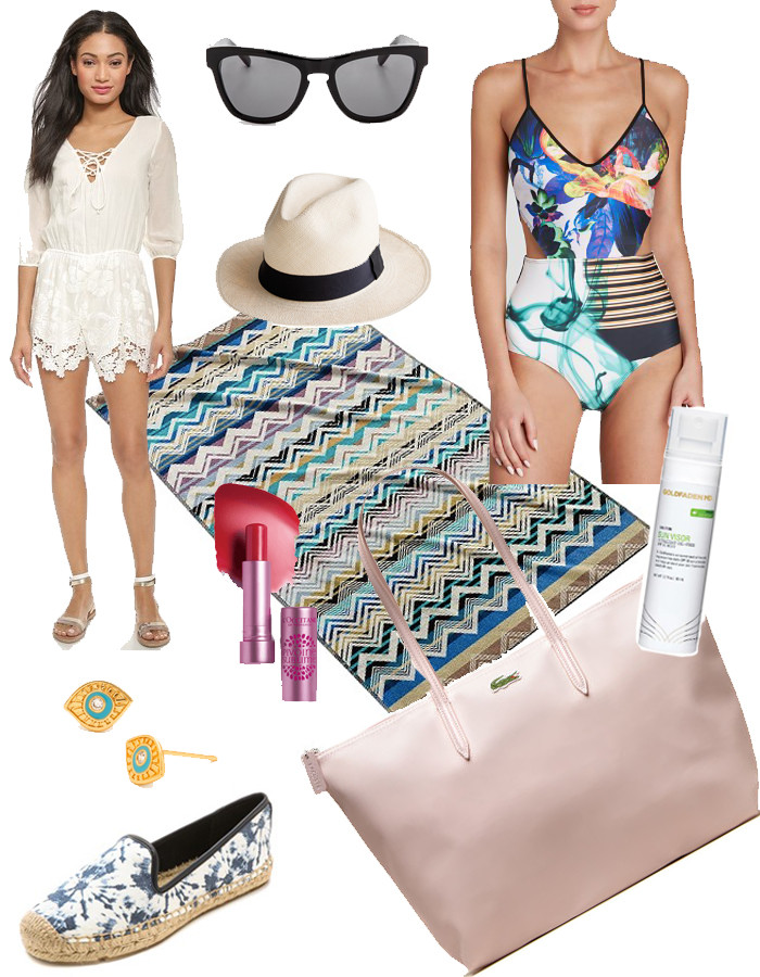 Kassatex Mistral Beach Towel // L’Occiatane Peony Tinted Lip Balm Rose Nude // Goldfaden MD Sun Visor SPF 30 Mist //
